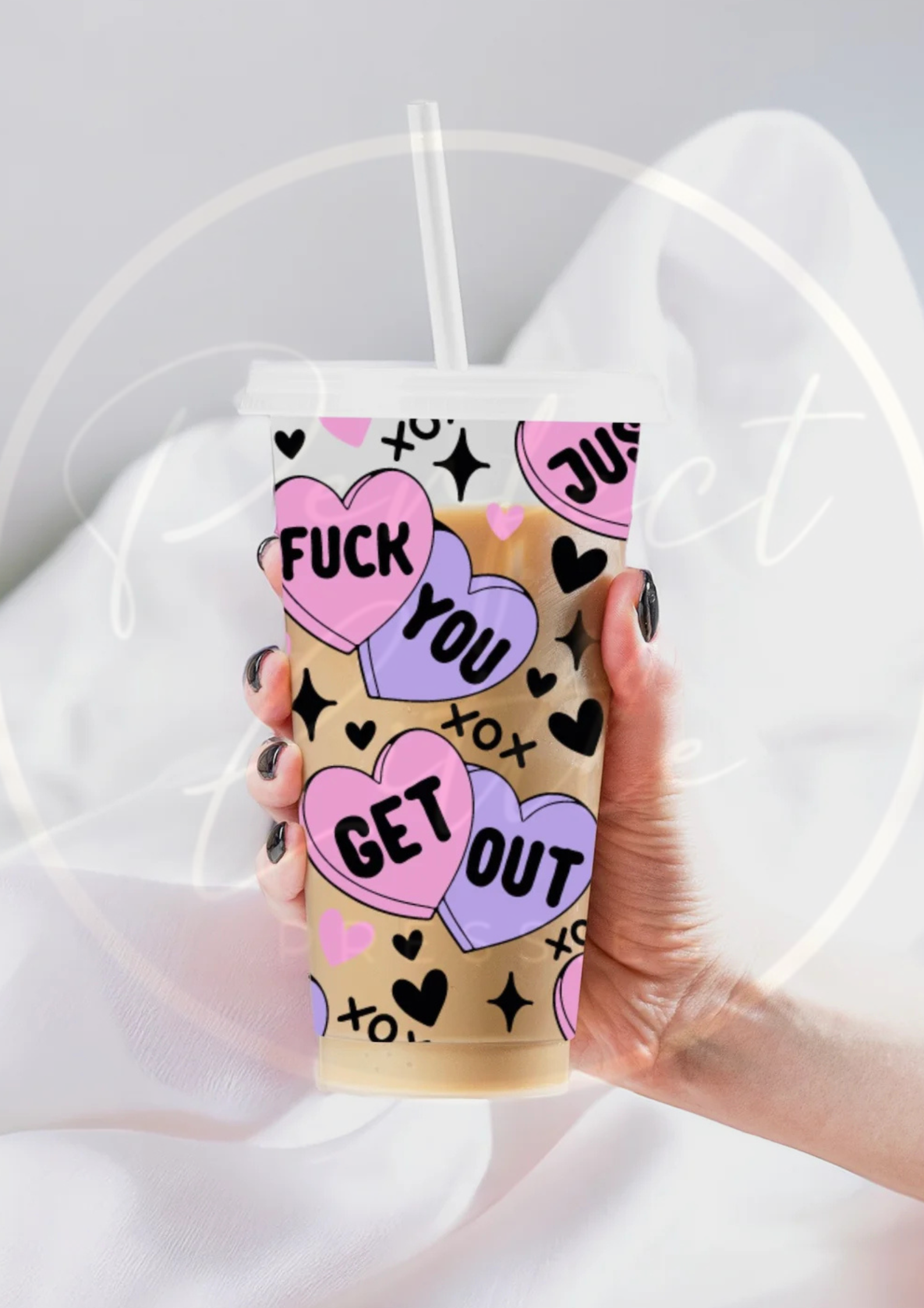 Bring a little flirt and fun to your day with this cheeky Love Hearts-inspired cold cup, featuring playful (and slightly naughty) messages with a grown-up twist! Perfect for iced coffees, cocktails, or your go-to cold drink, this cup is a hilarious way to show some personality while keeping your drink cool.