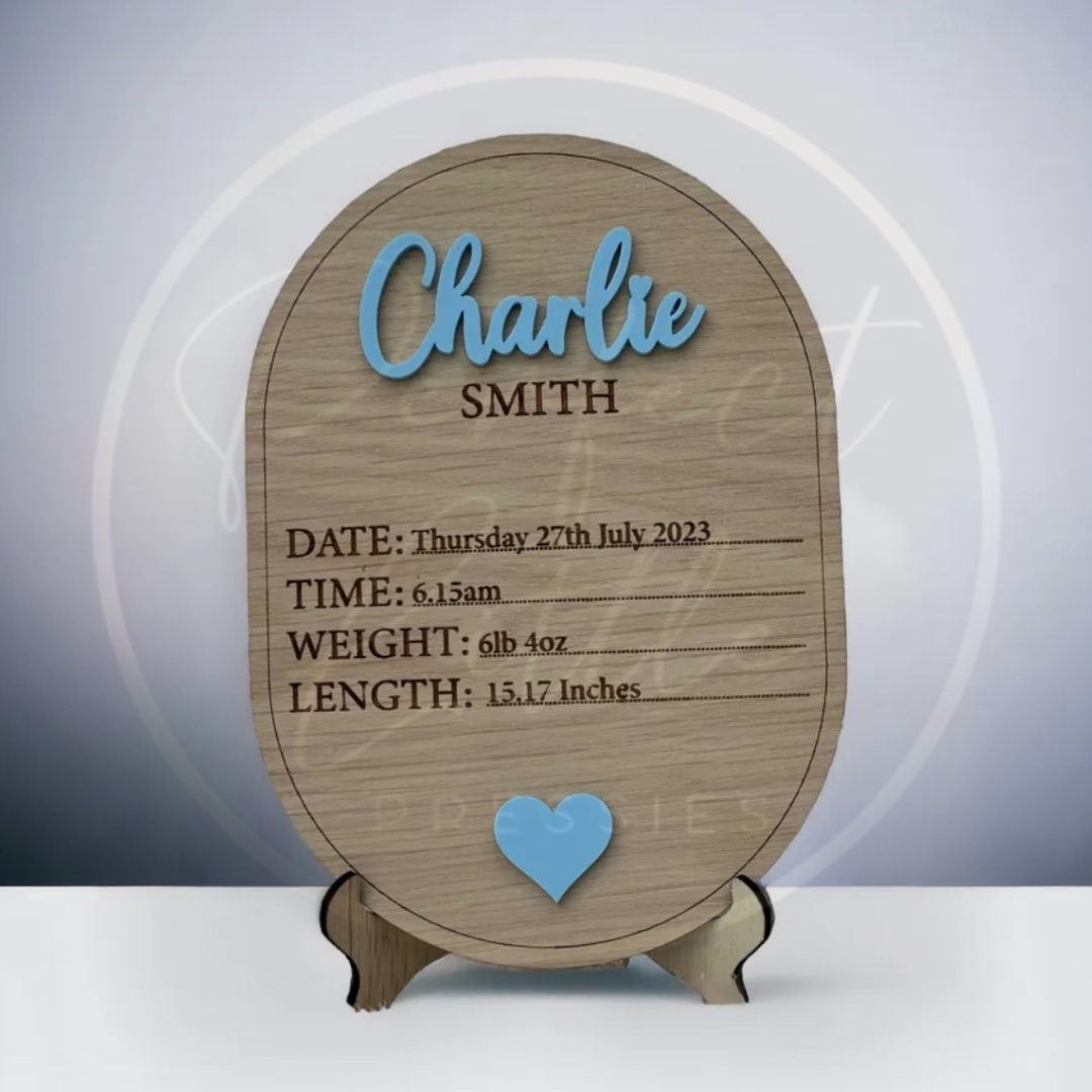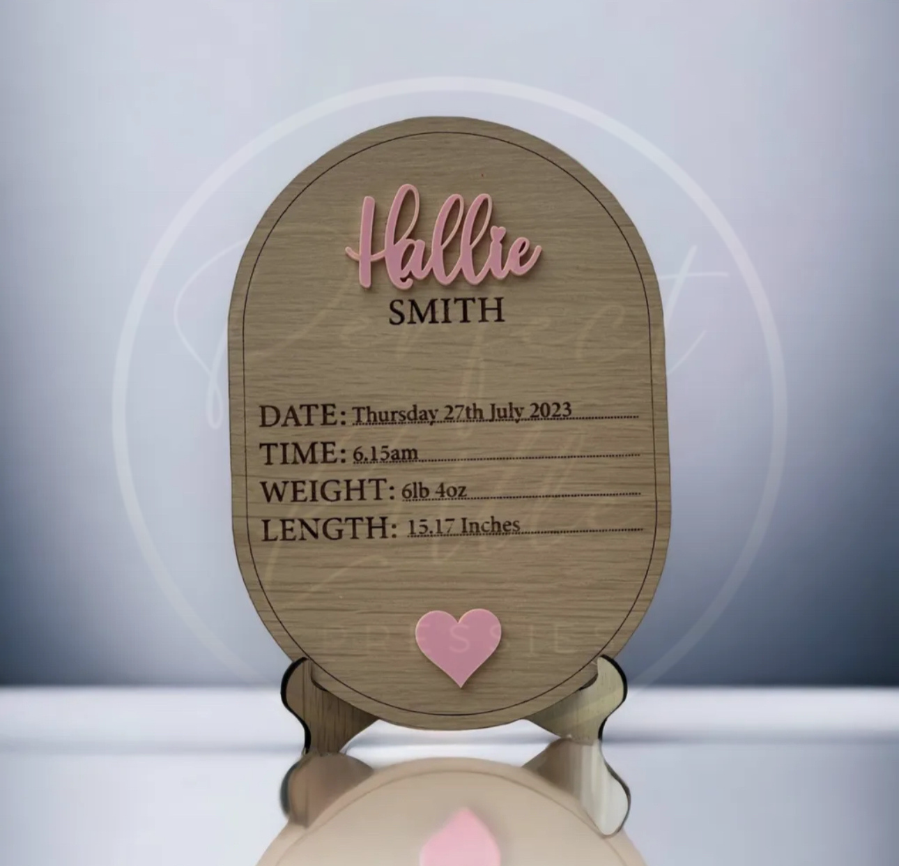 Baby Birth Details 3D Acrylic/Oak Plaque