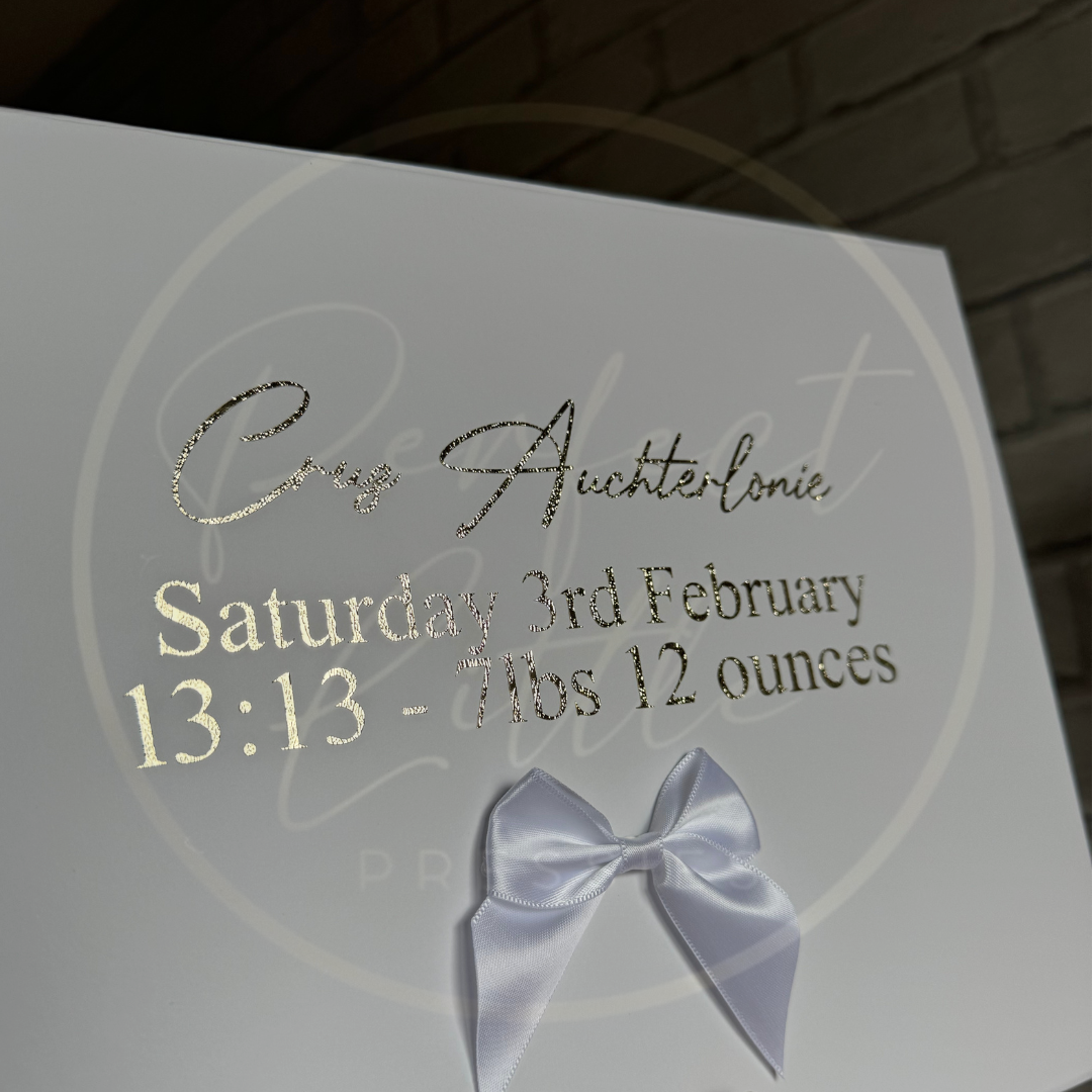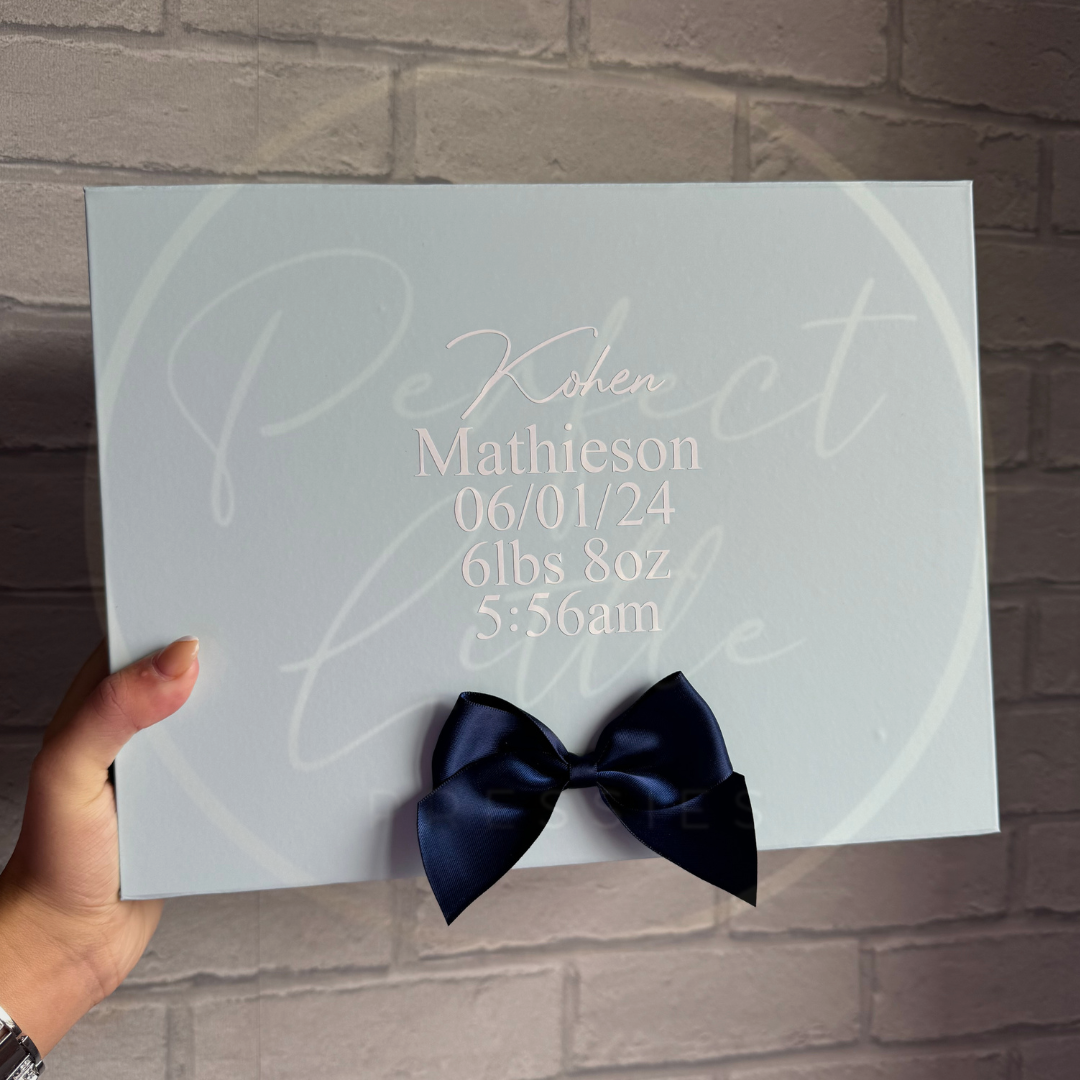 Each box is custom printed with your baby’s unique birth details, making it a one-of-a-kind gift or cherished memento for proud parents.