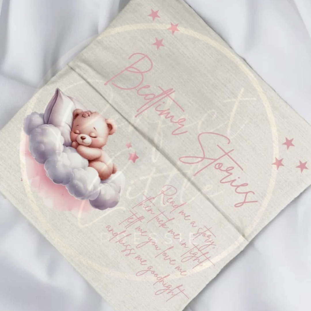 Make bedtime extra special with this beautifully crafted linen cushion cover, designed with a built-in pocket to hold your child’s favourite bedtime story. Made from soft, high-quality linen, this cushion cover combines comfort with practicality, featuring a front slot perfectly sized to keep a book tucked away and ready for nightly reading. Personalised with your child's name and a sweet bedtime-themed design, it makes a thoughtful gift for little readers. Whether for a nursery, reading nook, or bedroom, this cushion cover adds warmth, charm, and a touch of storytelling magic to every night.