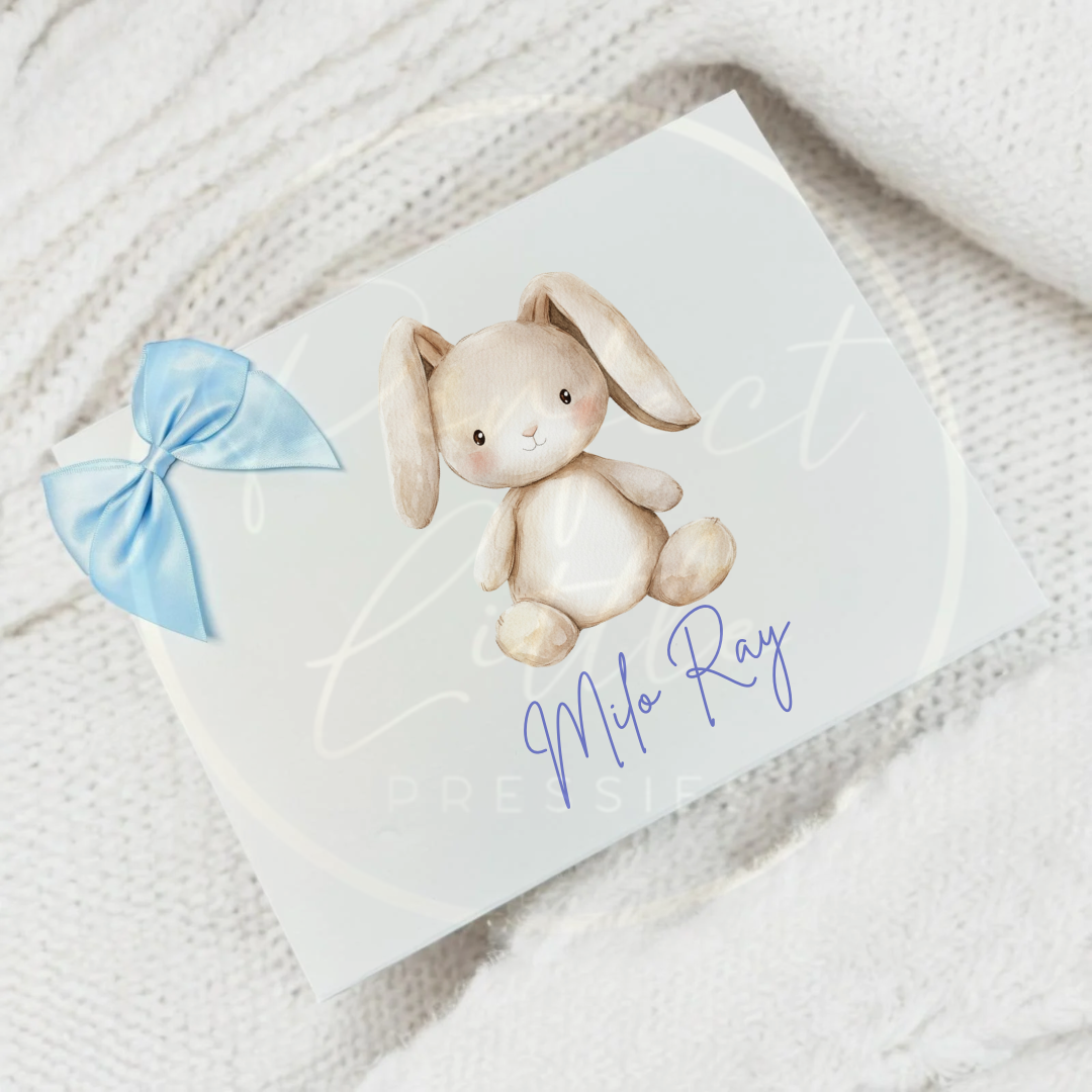 Capture the sweetest memories with this adorable personalised keepsake box, beautifully illustrated with a charming bunny design. Perfect for storing precious treasures like baby’s first outfit, hospital tags, cards, or milestone keepsakes, it’s a thoughtful gift for newborns, birthdays, or christenings.