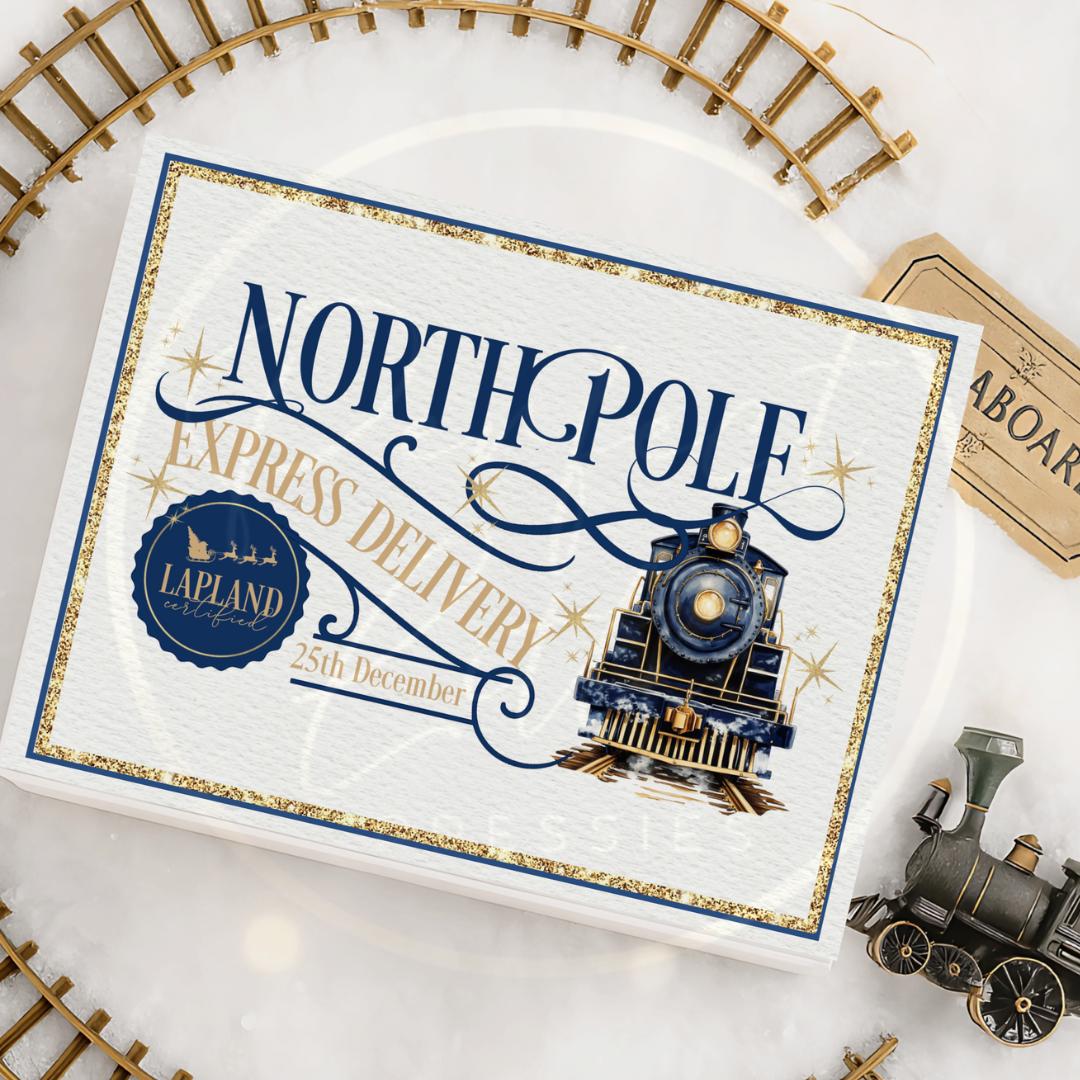 Crafted from premium, sturdy card with a secure magnetic closure, this box combines luxury and practicality—easy to open, beautifully reusable, and strong enough to hold your festive surprises year after year. The Express Train artwork adds a whimsical, enchanting touch that captures the wonder of the season.