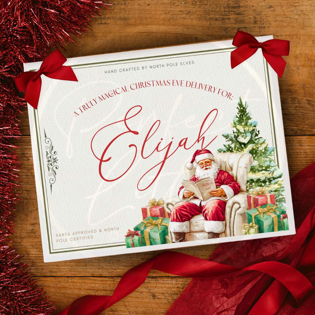 Crafted from premium, sturdy card with a secure magnetic closure, it’s both practical and luxurious—easy to open, durable, and reusable year after year. The heart-warming Santa on his rocking chair design makes it a standout piece under any Christmas tree and a keepsake to treasure for many seasons to come.
