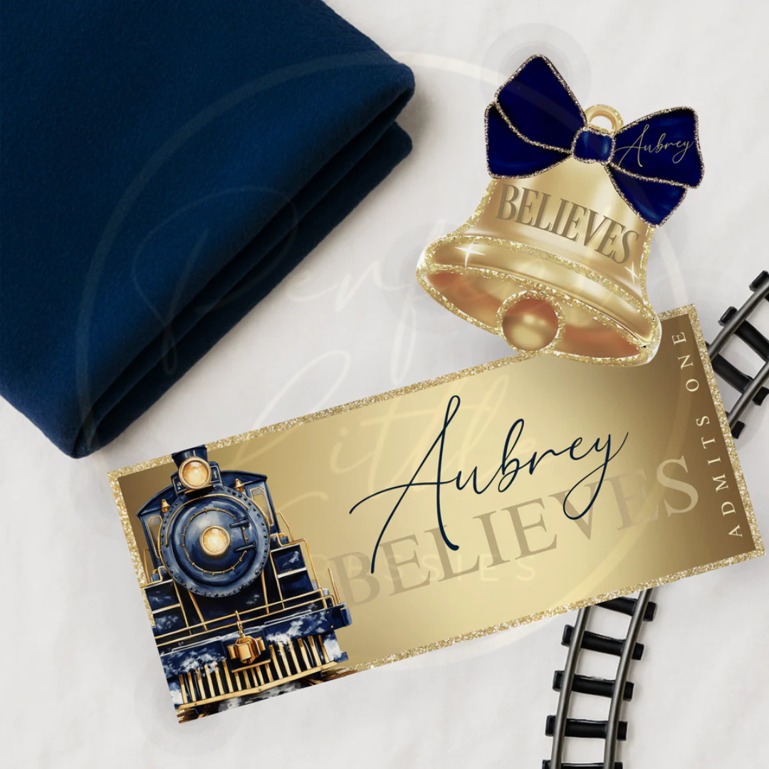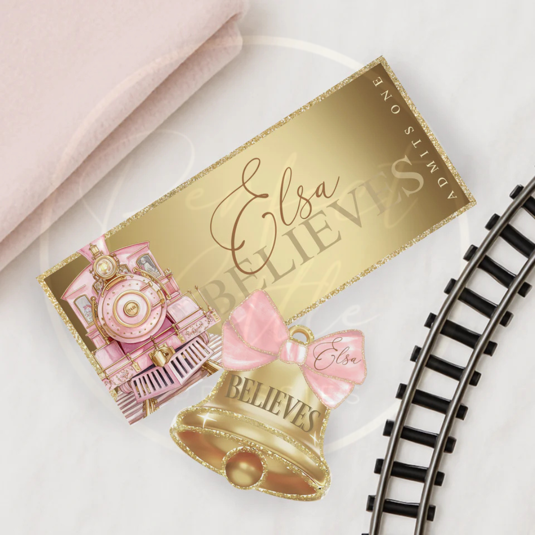 🚂🎫 Personalised Gold Christmas Express Ticket – “[Name] Believes” Design 🎄✨