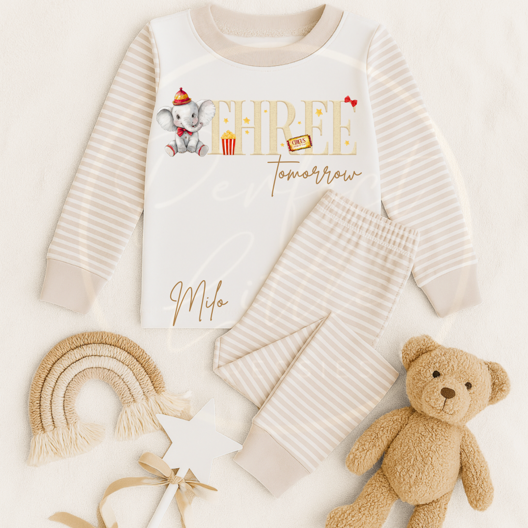 Roll up, roll up – it’s time to celebrate in style with these fun and festive circus-themed birthday pyjamas! Featuring a colourful design complete with circus tents, animals, and your child’s name and age, these personalised pyjamas are perfect for making birthday mornings extra magical.