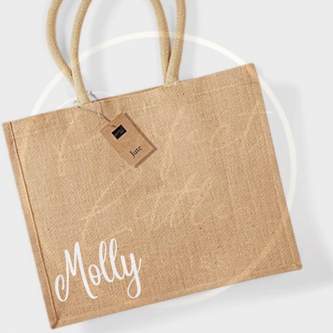 Personalised Jute Tote Bag – Custom Name Shopper (UK)