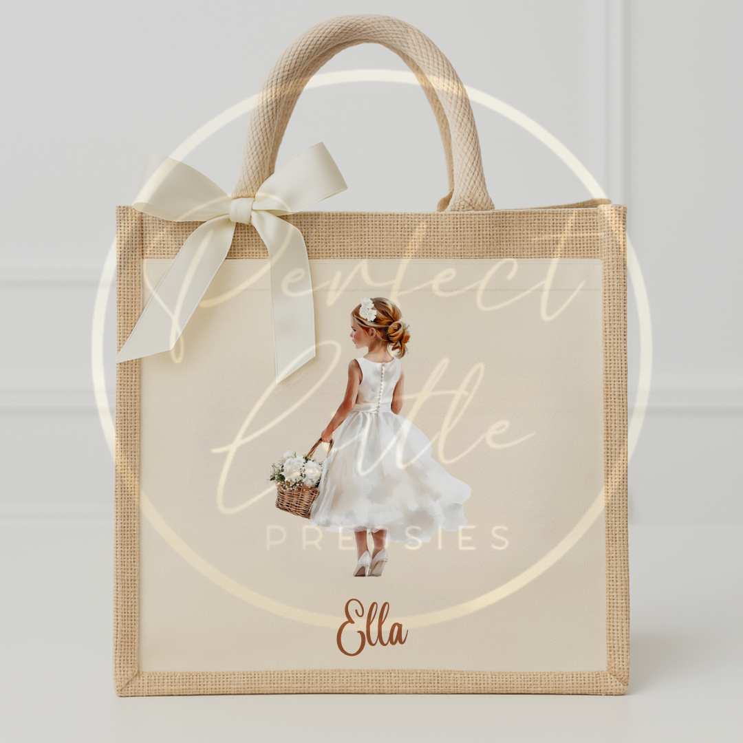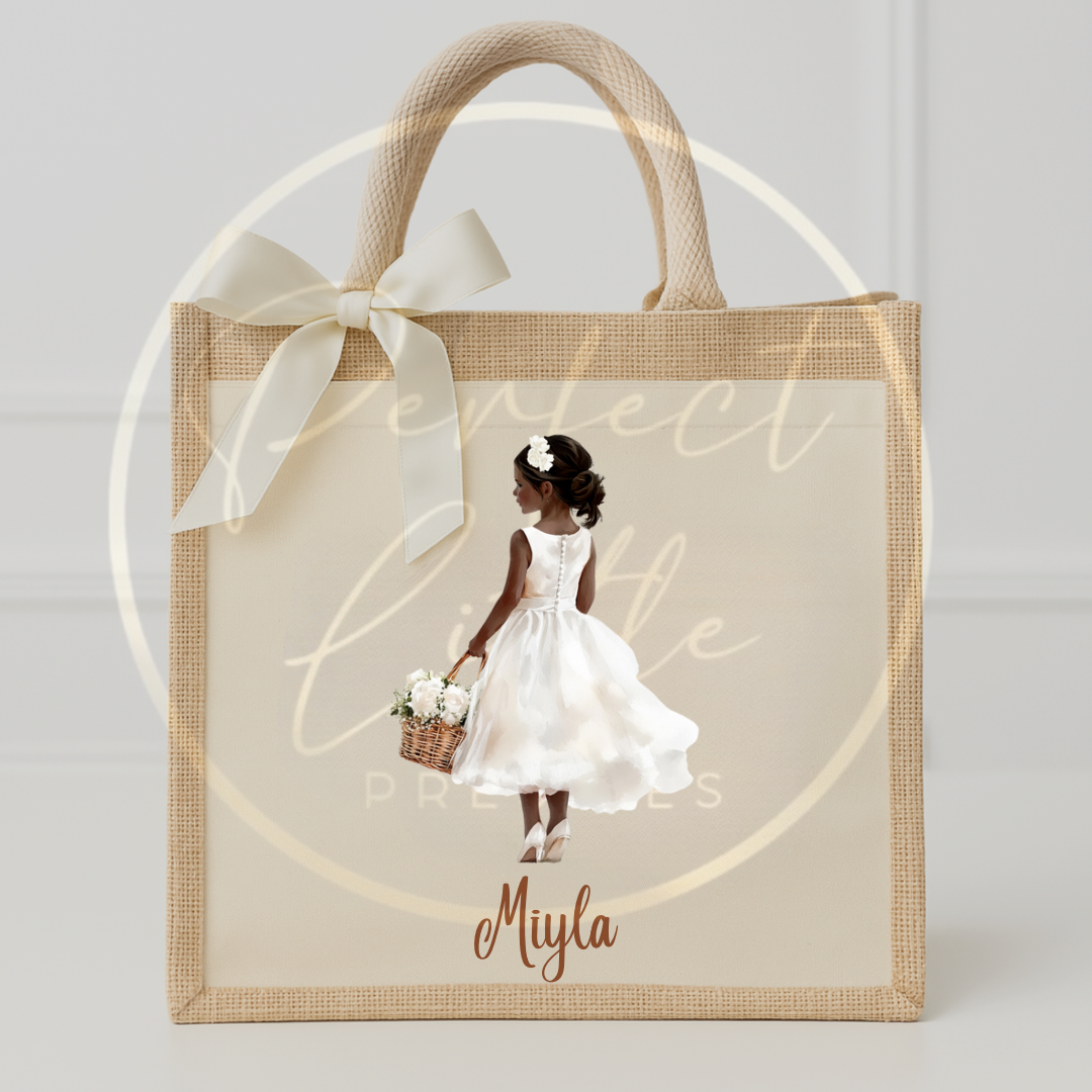 Make your little flower girl feel extra special with our adorable Personalised Flower Girl Dolly Tote Bag! Featuring a sweet flower girl dolly illustration, this charming tote is the perfect keepsake for your wedding day.