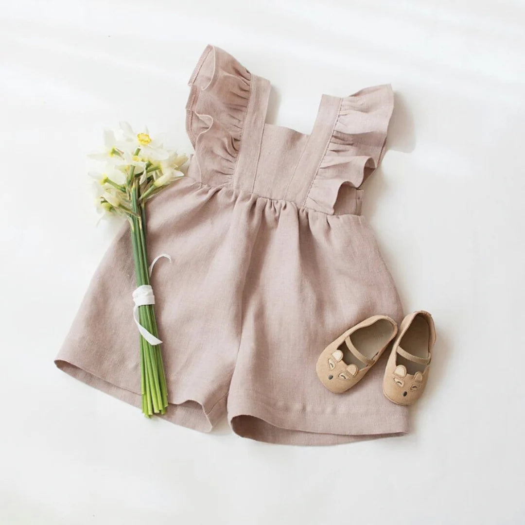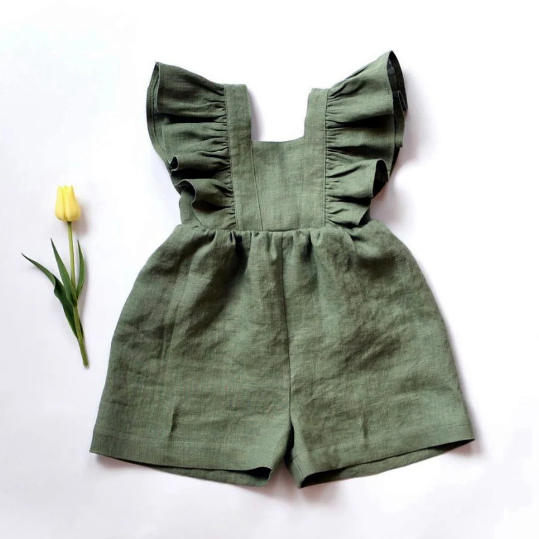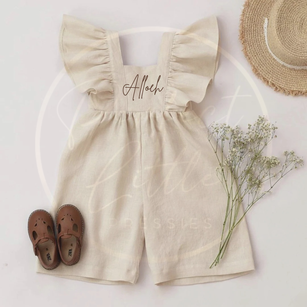 Personalised Girls’ Linen Frill Shoulder Playsuit