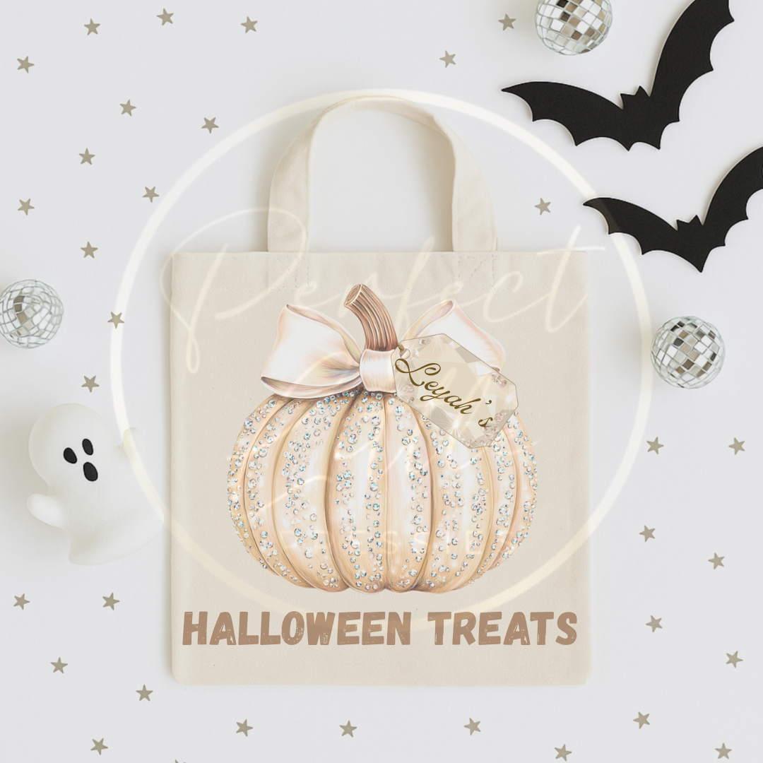 Get ready to sparkle this spooky season with our Personalised Glitter Pumpkin Tote Bag! Featuring a charming glittery pumpkin design, this tote is perfect for Halloween outings, trick-or-treating, fall markets, or just showing off your autumn spirit.
