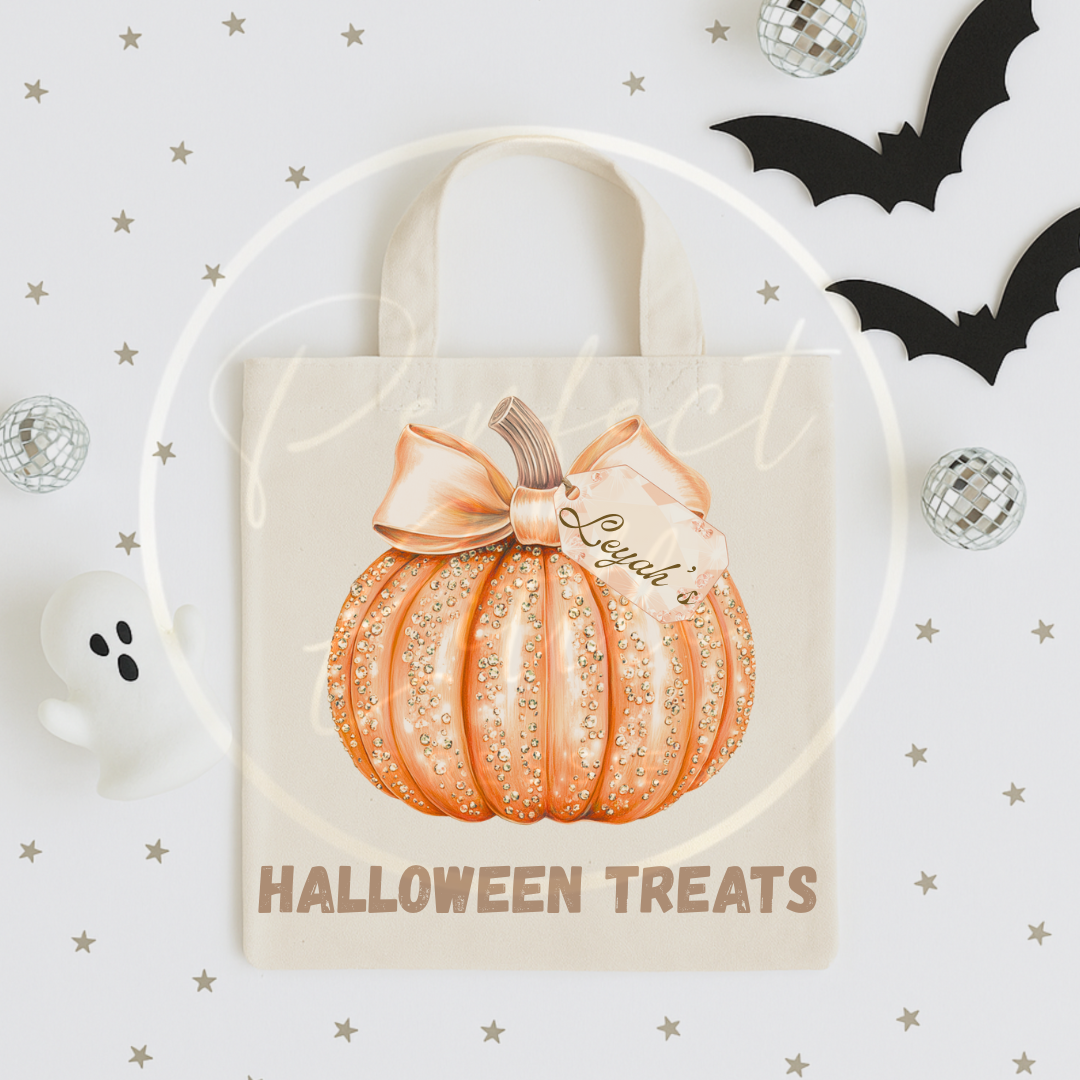 🎃 Personalised Glitter Pumpkin Tote Bag ✨