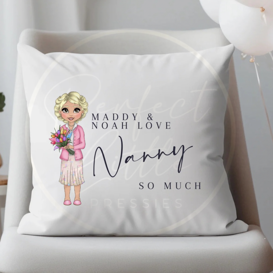 Celebrate Grandma in the most adorable way with our Personalised Cushion Cover featuring a Custom Grandma Dolly – a heartfelt gift for any occasion!