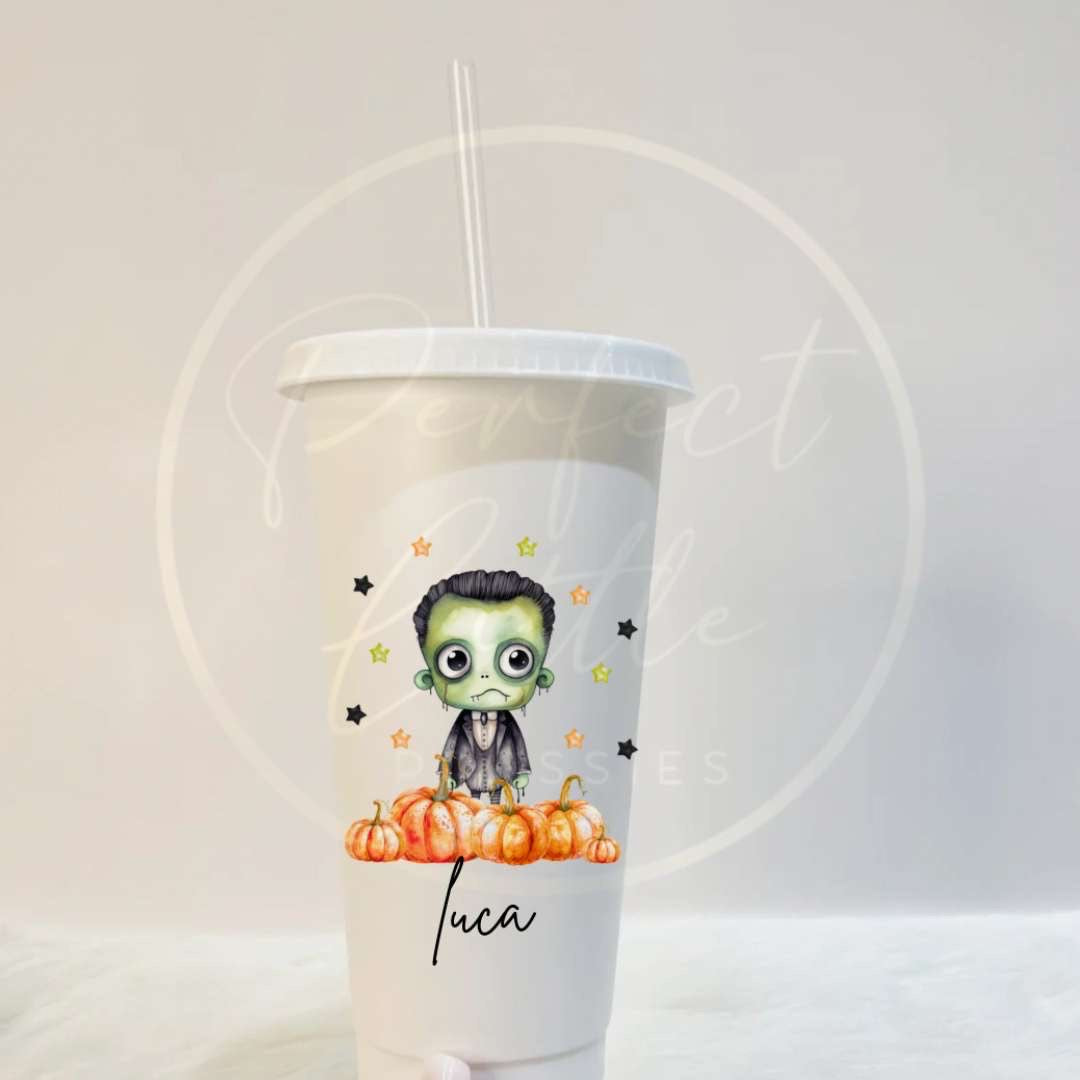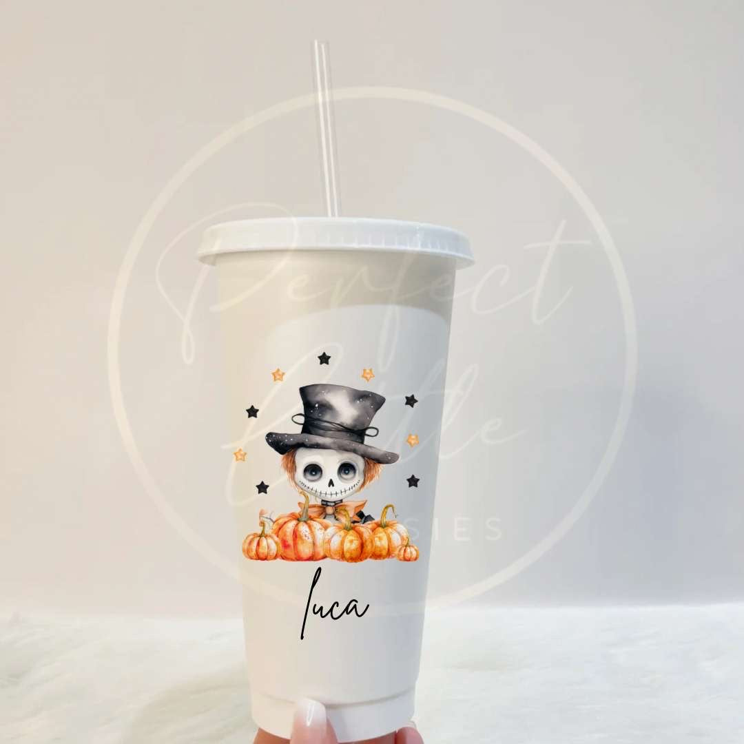 Made from sturdy, BPA-free plastic, this reusable cup includes a matching lid and straw—ideal for iced drinks, potions, or spooky smoothies.