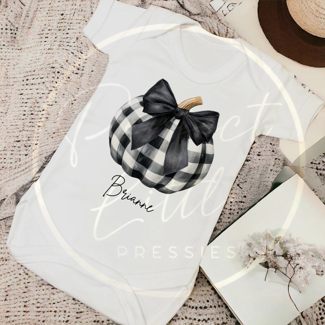 Black & White Check Pumpkin Baby Grow