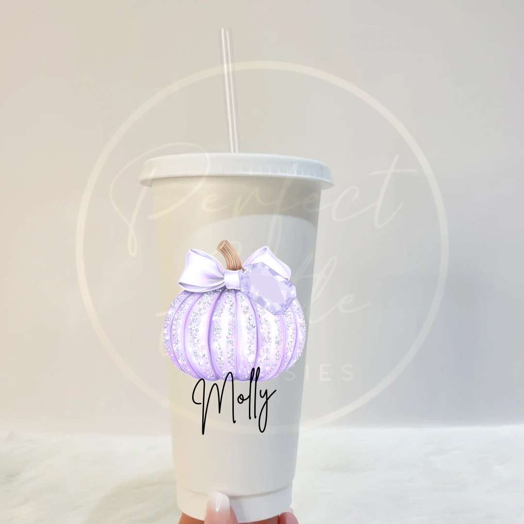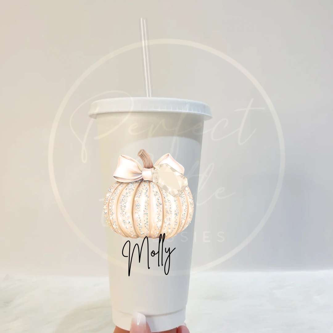 🎃 24oz Cold Cup – Glitter Pumpkin Design