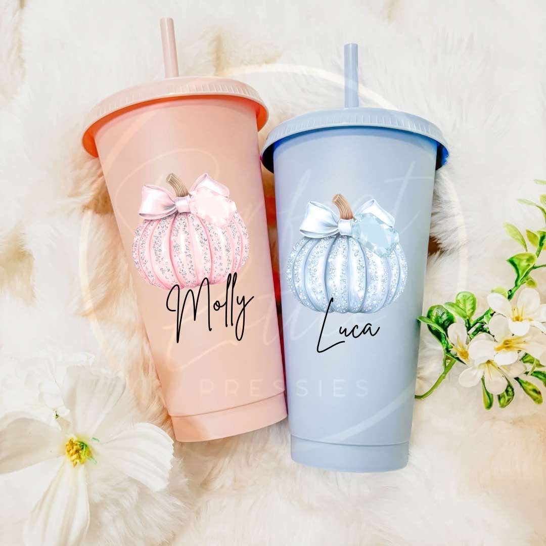 🎃 24oz Cold Cup – Glitter Pumpkin Design
