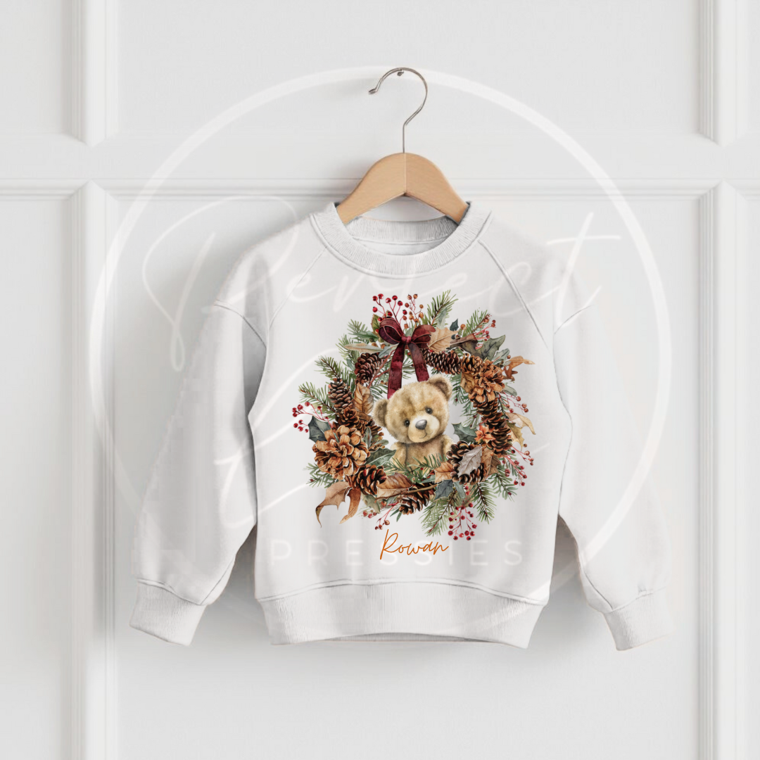 Halloween Kids Bear Autumn Wreath Sweatshirt