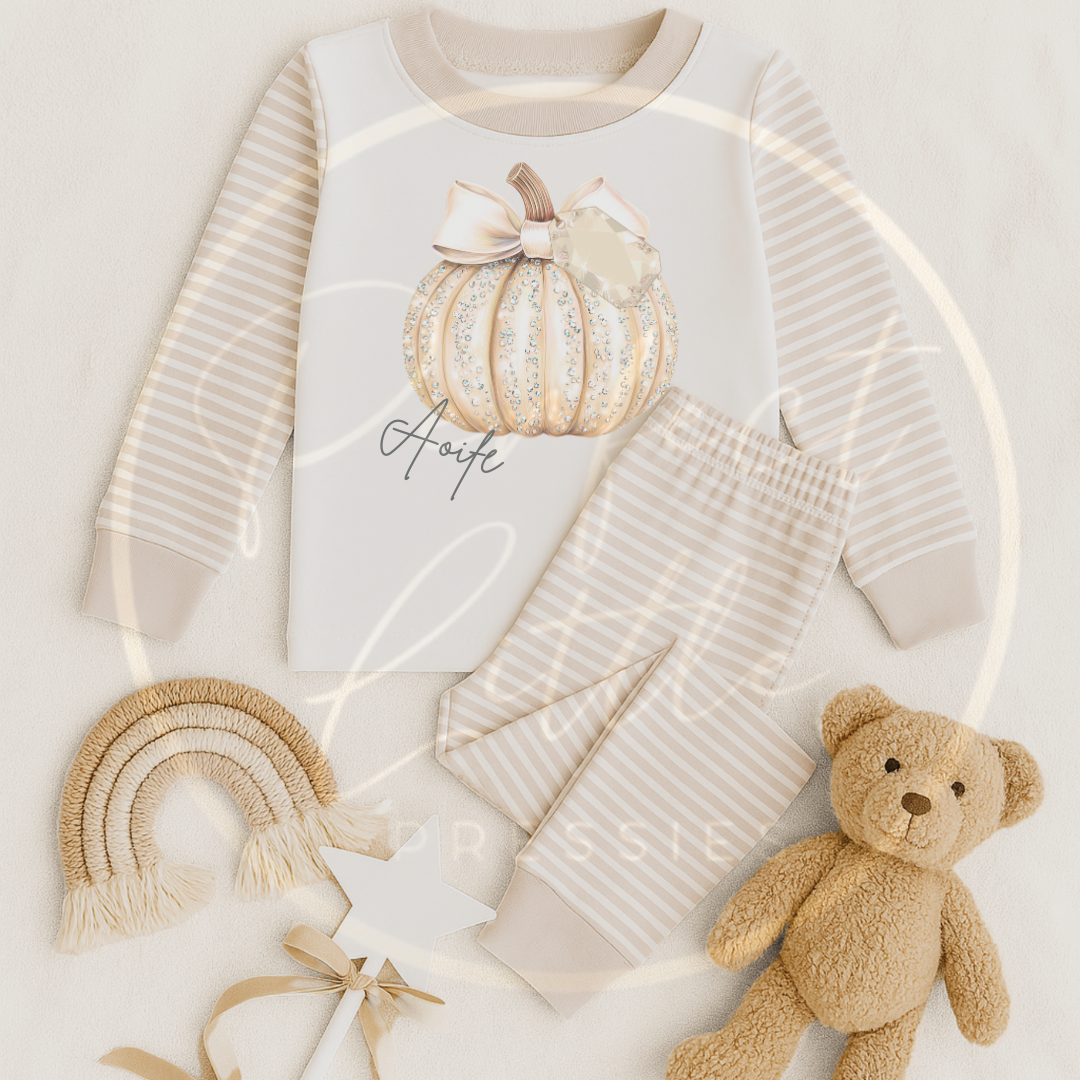 Add a little sparkle to bedtime with these pyjamas featuring a glitter pumpkin design. Perfect for autumn nights and Halloween fun, they bring a touch of seasonal magic to cosy evenings. Made from soft, breathable fabric that’s gentle on the skin and easy to wash, these pyjamas are as comfortable as they are eye-catching. Ideal for Halloween sleepovers, autumn lounging, or as a special seasonal gift.