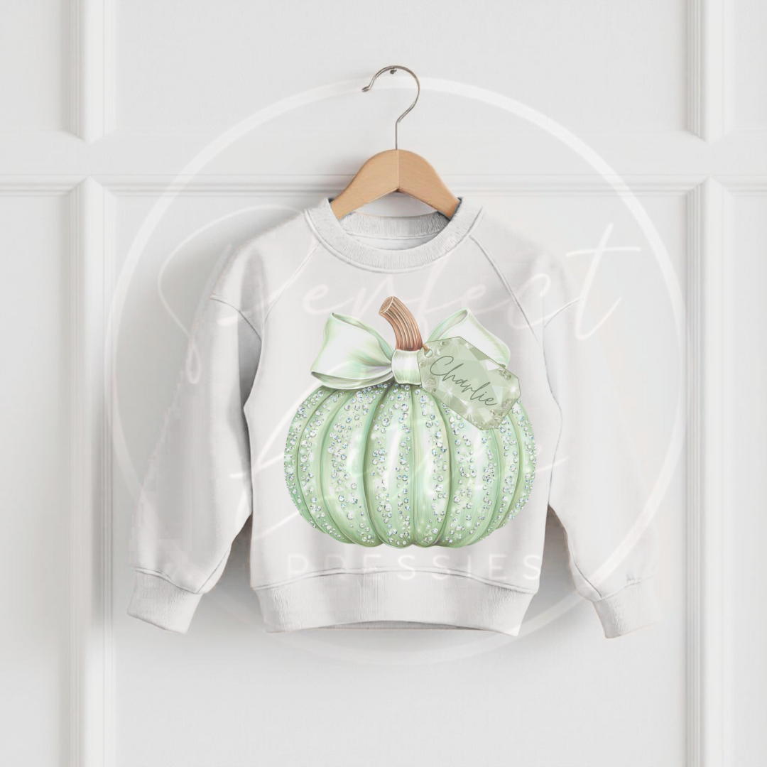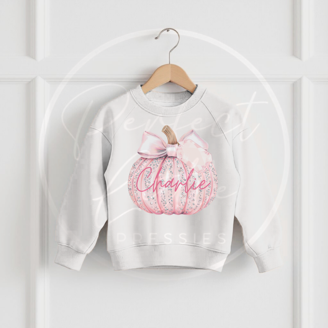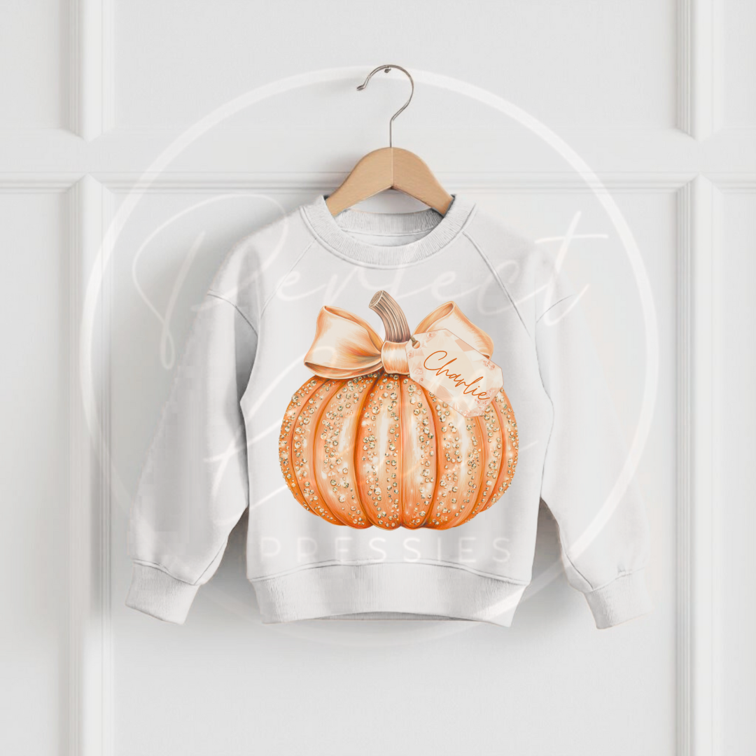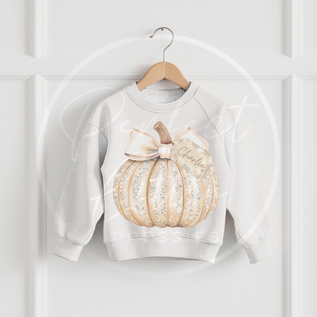 Personalised White Kids’ Glitter Pumpkin Sweatshirt