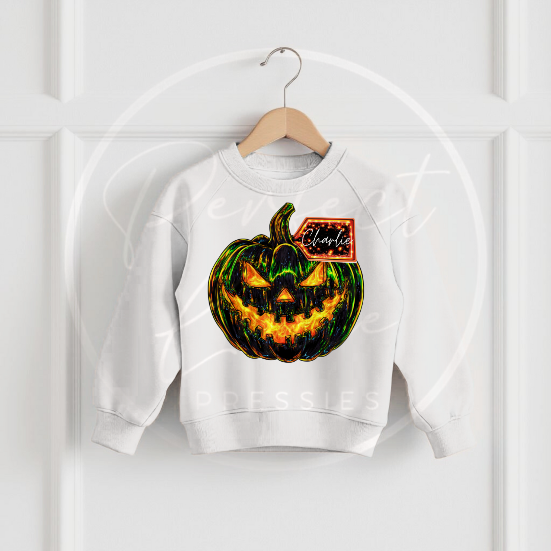 Halloween Kids Spooky Neon Pumpkin Sweatshirt