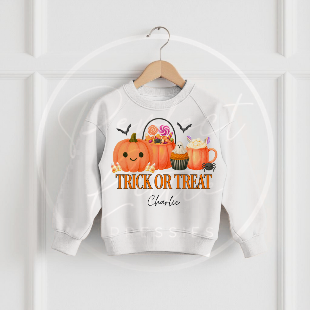 Personalised White Kids’ Orange Trick or Treat Pumpkin Sweatshirt