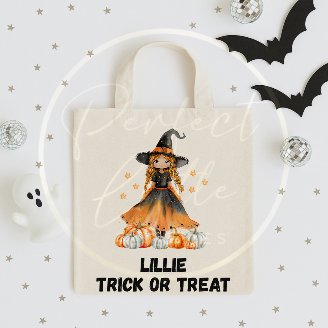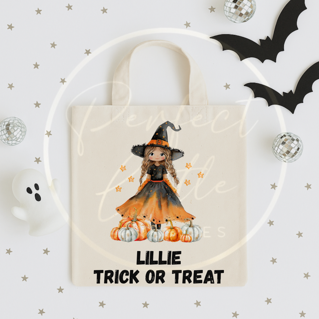 Halloween Witch Custom Dolly Orange Dress Tote Bag