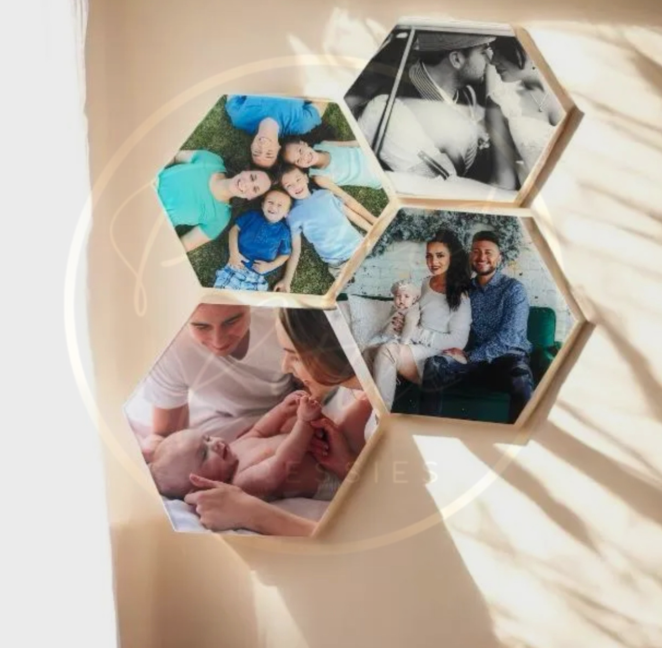 Turn your favourite memories into a stunning display with our custom hexagon photo tiles – the perfect way to showcase special moments in a modern, creative way. These sleek, frameless tiles feature your chosen photo printed in vibrant, high-definition colour on a lightweight, durable material that’s easy to hang and reposition.