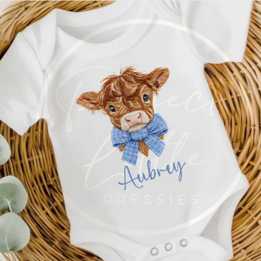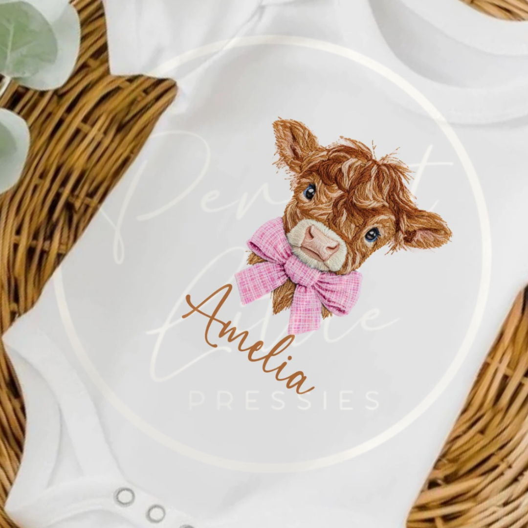 Dress your little one in country charm with this adorable Personalised Highland Cow Baby Grow. Featuring a sweet and rustic Highland cow illustration alongside your custom text—such as a name, date, or short message—this baby grow is both unique and heartwarming.