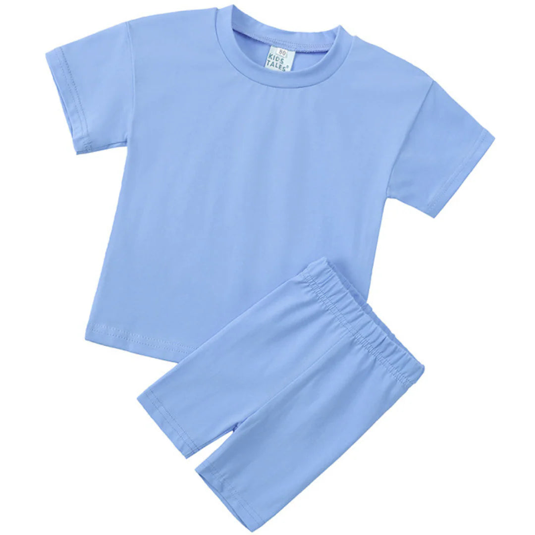 The soft cotton-blend T-shirt features a custom name or message on the front — choose from a variety of fonts and colours to make it uniquely theirs! Paired with comfortable, stretchy cycling shorts, this set is designed for all-day wear, allowing for full freedom of movement while keeping your child cool and comfy.