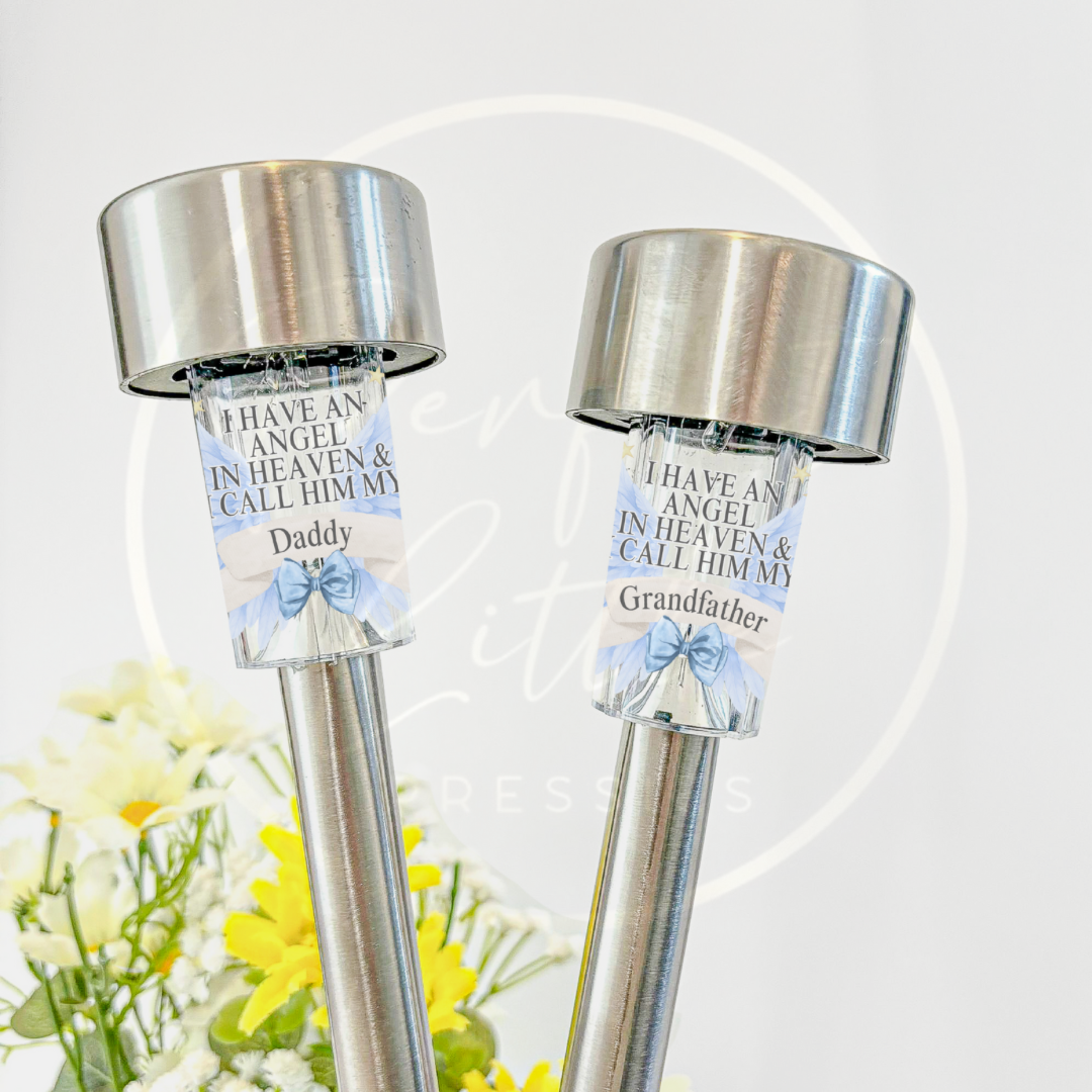 Honour the memory of a loved one with our personalised memorial solar light, beautifully engraved with the touching phrase: "I have an angel in heaven, I call her/him [Name]." This meaningful tribute glows gently at night, serving as a comforting reminder that your angel is always near.
