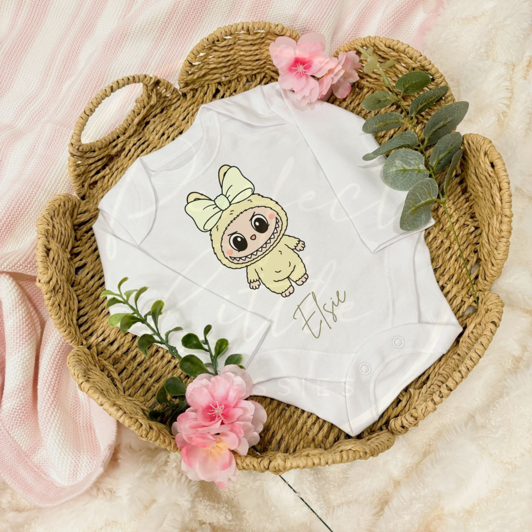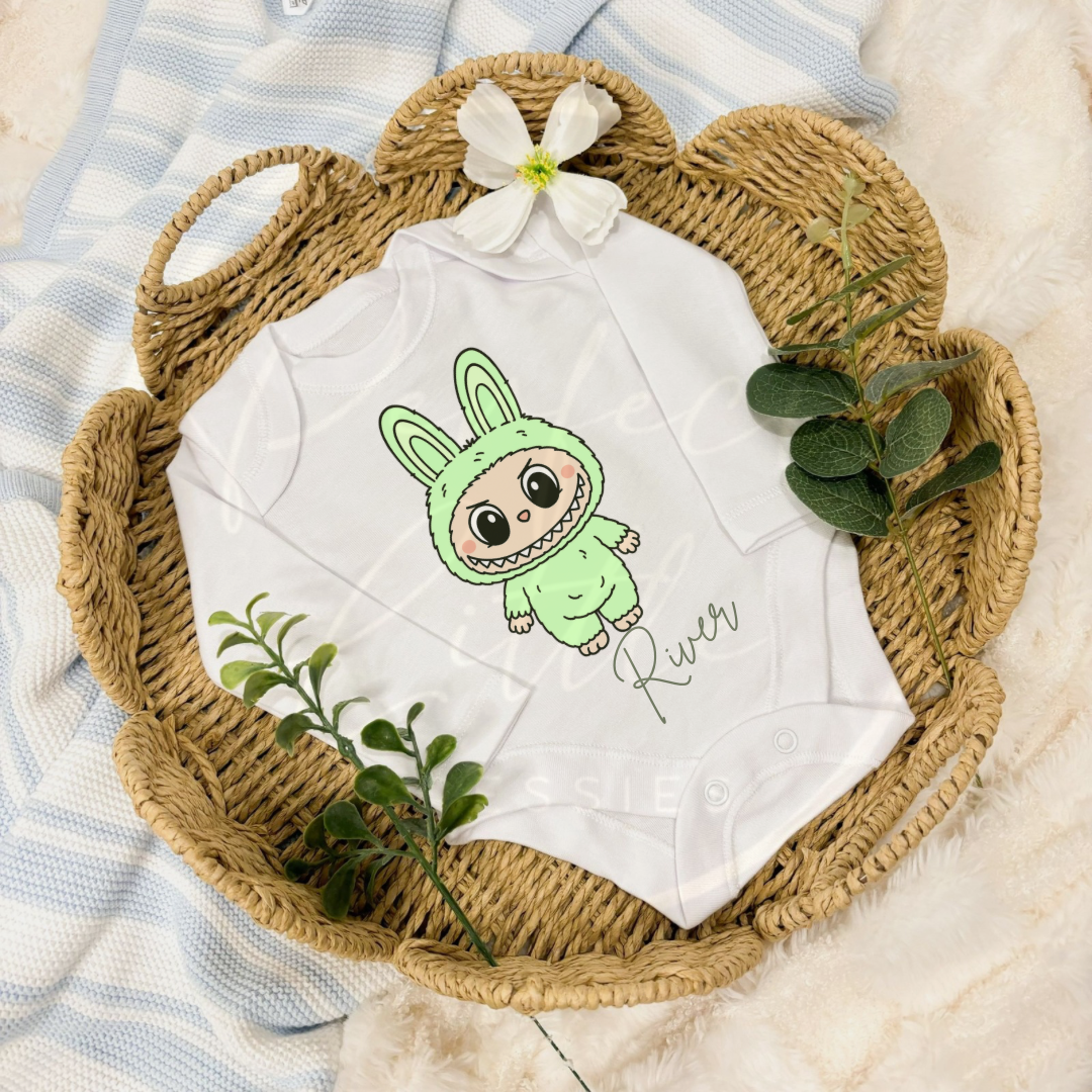 Full of fun and bursting with personality, this personalised baby grow features a playful little monster design, complete with your baby’s name. Bright, cheeky, and full of character, it’s the perfect outfit for your tiny mischief-maker—ideal for everyday wear, photos, or a fun baby shower gift.