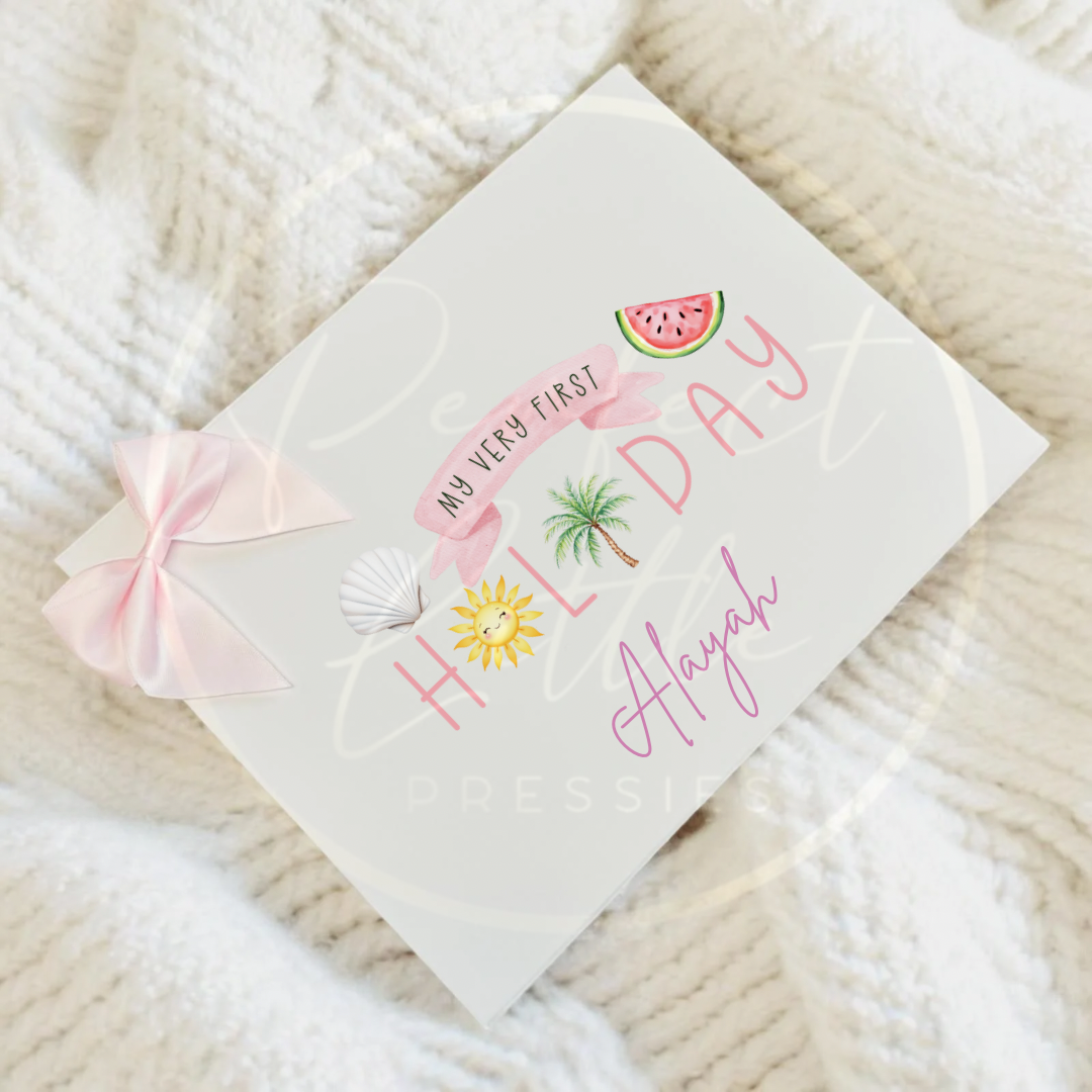 Capture the joy of those first seaside adventures with this sunny and cheerful personalised keepsake box, featuring a bright summery design and the phrase “My Very First Holiday” – perfect for storing memories from that unforgettable first getaway.