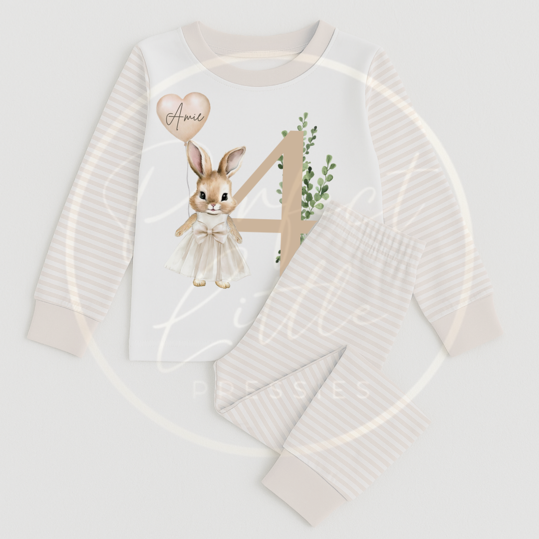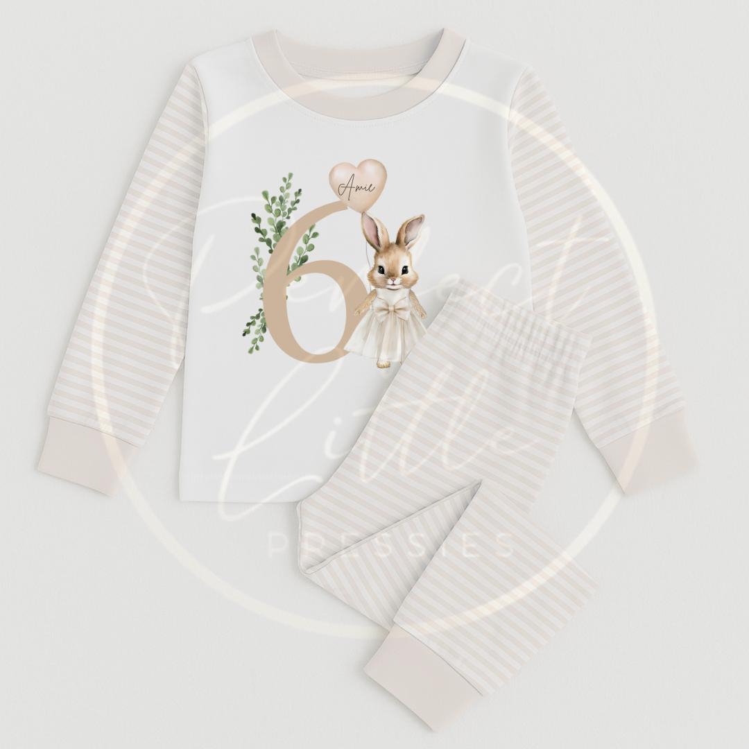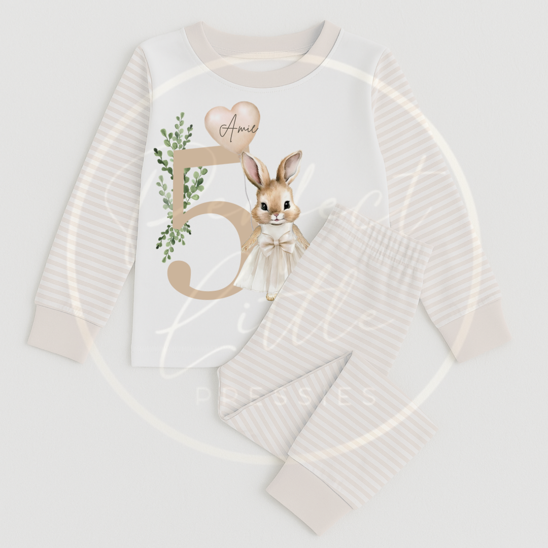 These adorable nude pyjamas are perfect for girls who love both comfort and cute style! Made from soft, breathable fabric, they offer a cozy fit that’s ideal for bedtime or lounging around. The set features a charming bunny design on the front, with playful ears and a sweet little tail, adding a touch of whimsy to the look. The neutral nude color is soft and versatile, while the gentle elastic waistband ensures a snug but comfortable fit. Whether it's for a cozy night in or a lazy weekend, these bunny pyjamas are sure to make bedtime extra fun and comfy!