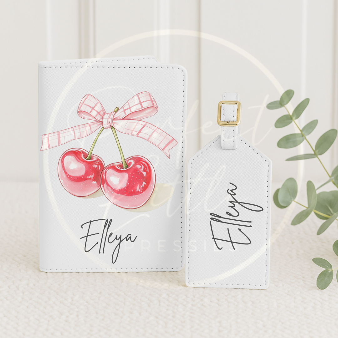 Personalised Cherry Bow Passport Cover & Luggage Tag Set