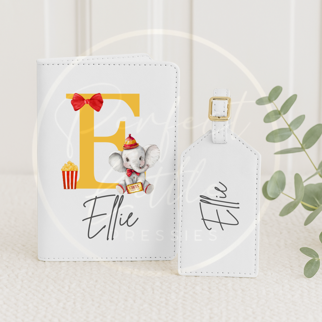 Personalised Circus Initial Passport Cover & Luggage Tag Set
