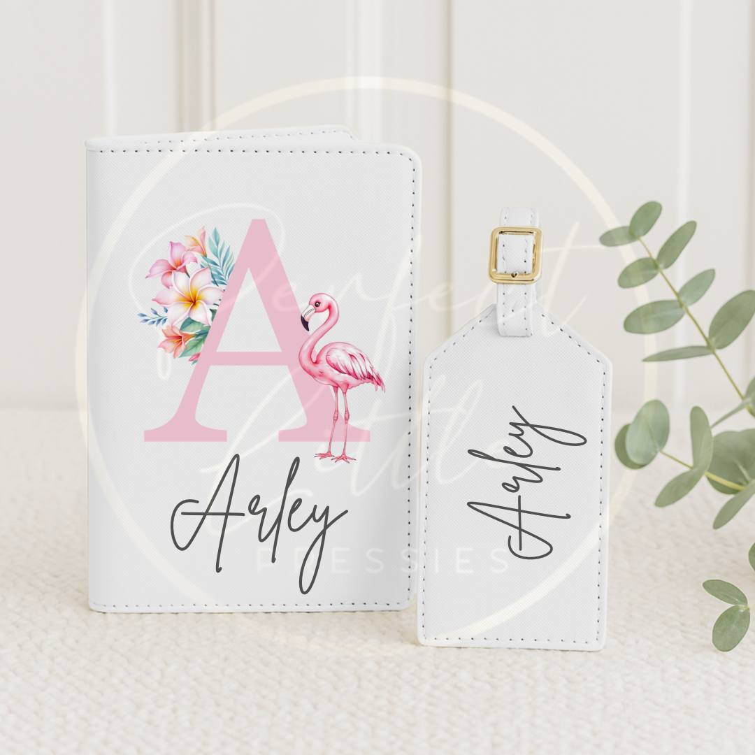 Passport Cover and Luggage Tag Set - Flamingo Initial