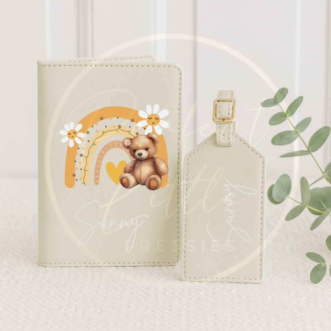 Personalised Passport Cover & Luggage Tag Set with Honey Bear Design – Sweet, Cute & Perfect for Little Adventurers