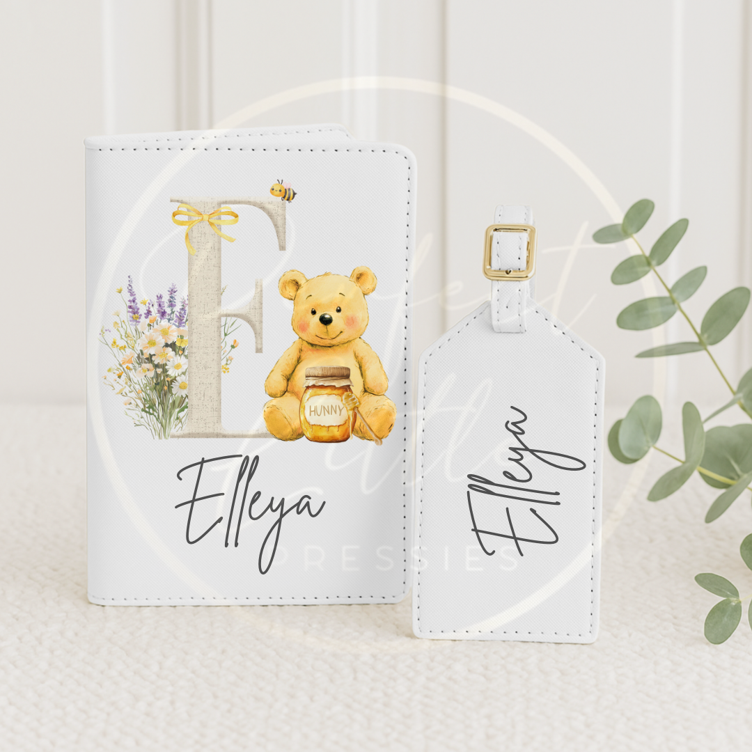 Personalised Honey Bear Passport Cover & Luggage Tag Set