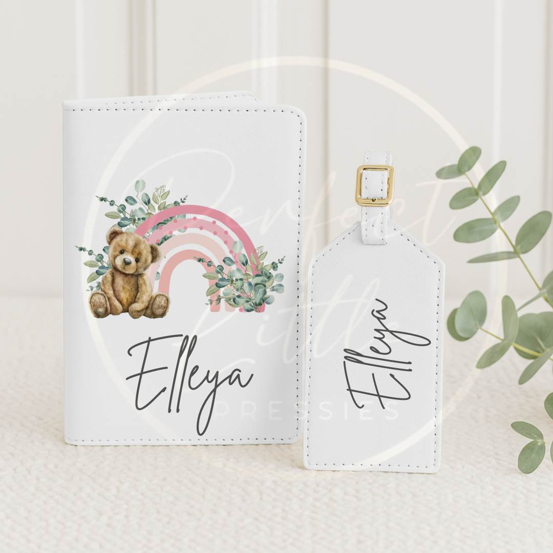 Passport Cover and Luggage Tag Set - Pink Rainbow Bear
