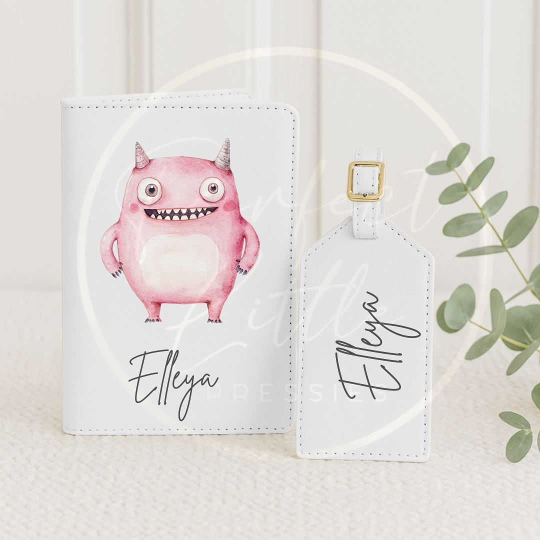 Passport Cover and Luggage Tag Set - Pink Worry Monster