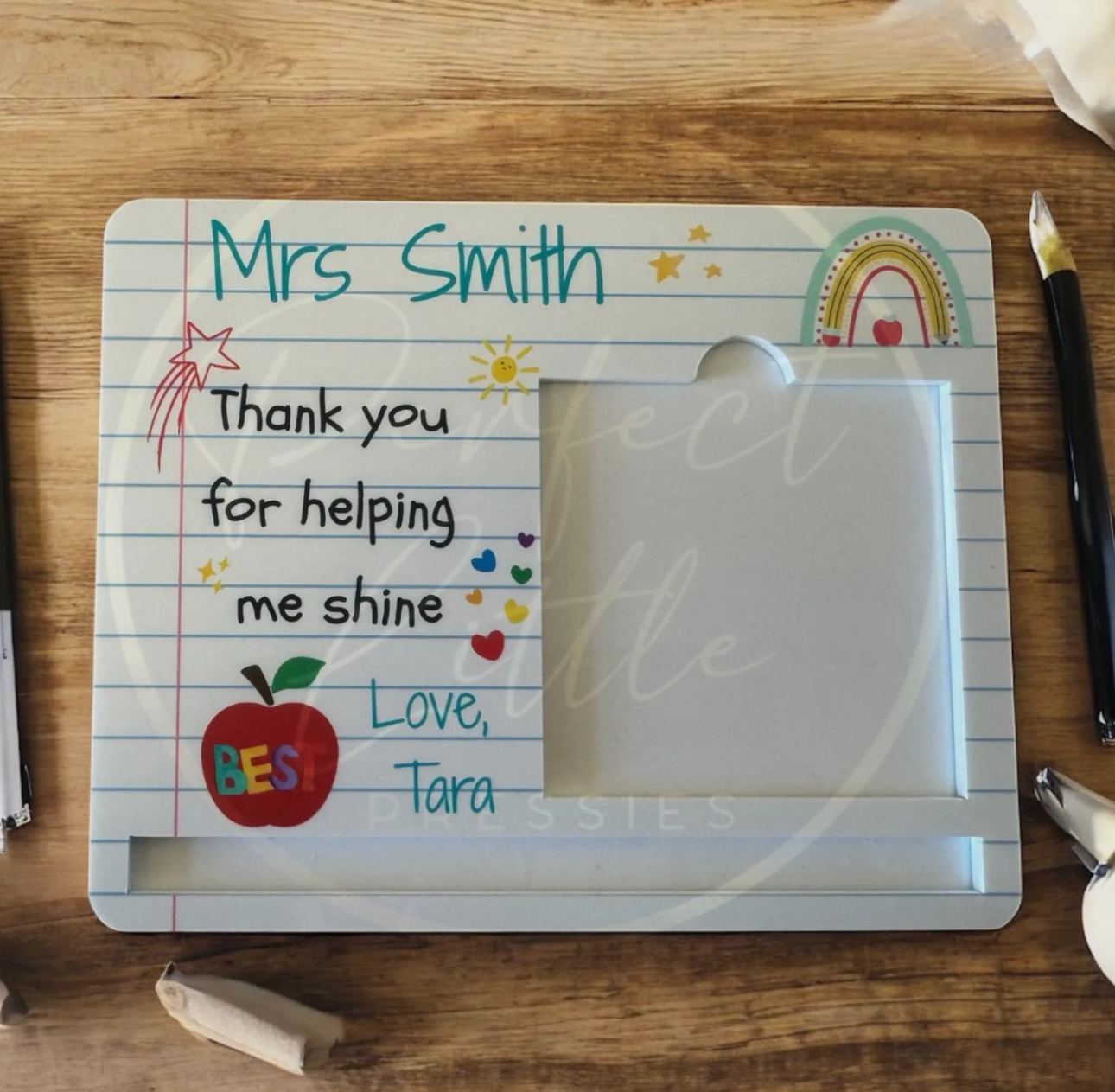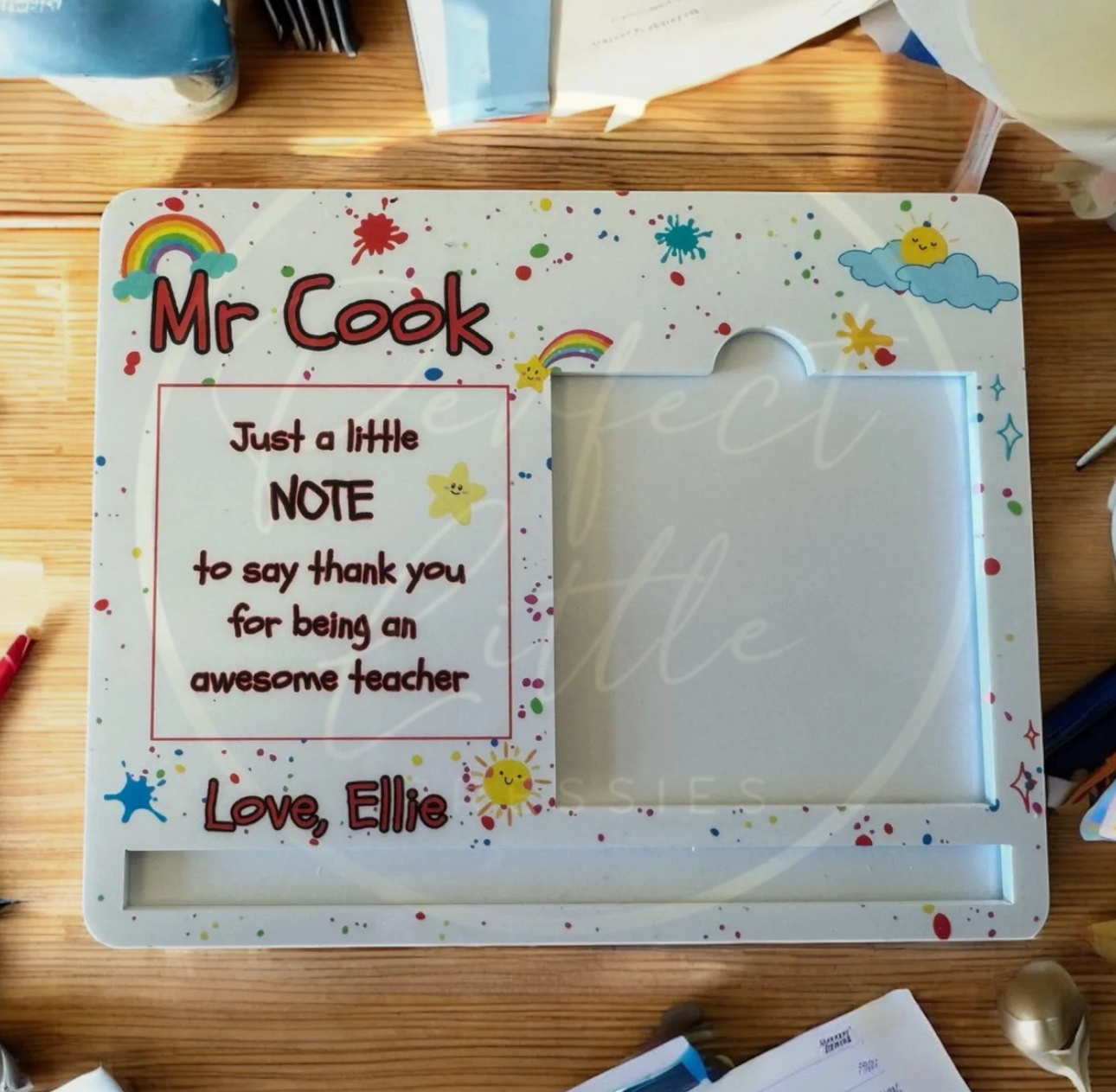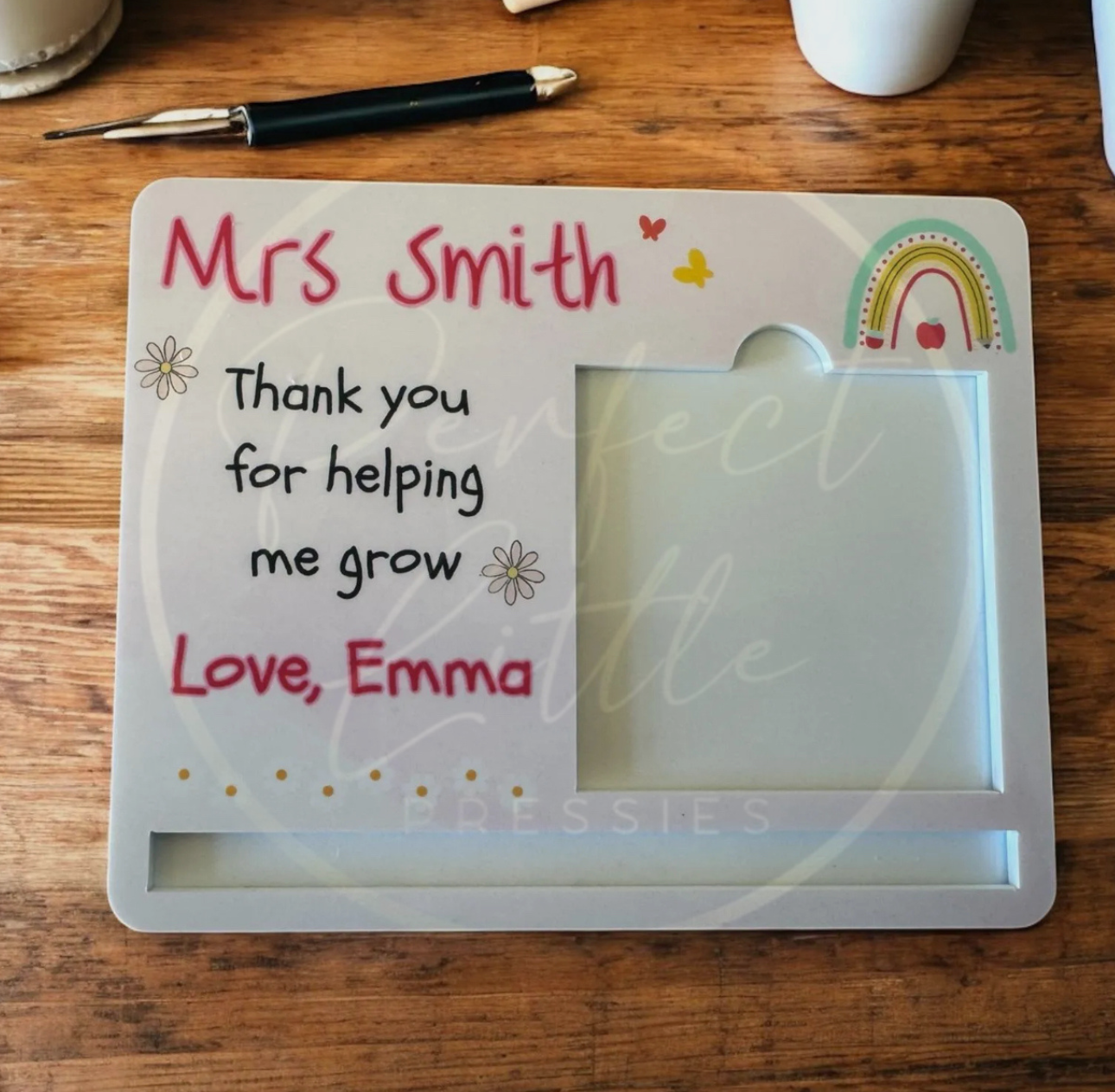 Whether it's a thank-you gift, end-of-year present, or a little something to show appreciation, this holder can be customised with the teacher's name or a special message to make it truly one-of-a-kind. With its sturdy base and compact design, it’s ideal for any classroom, office, or home workspace.